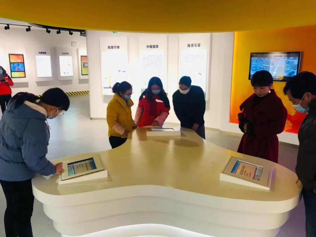 勞動(dòng)保護(hù)教育館由政策法規(guī)宣傳區(qū)、事故案例警示區(qū)、職業(yè)衛(wèi)生學(xué)習(xí)區(qū)、勞保用品展示區(qū)和學(xué)習(xí)成果檢驗(yàn)區(qū)5個(gè)部分組成,通過(guò)聲、光、電等現(xiàn)代展示手段開(kāi)展教育培訓(xùn)。在講解員的帶領(lǐng)下,員工們觀看了警示教育動(dòng)畫(huà)片,了解了勞動(dòng)保護(hù)法的發(fā)展歷程,易發(fā)生的重大安全事故類(lèi)型以及典型職業(yè)病等內(nèi)容。